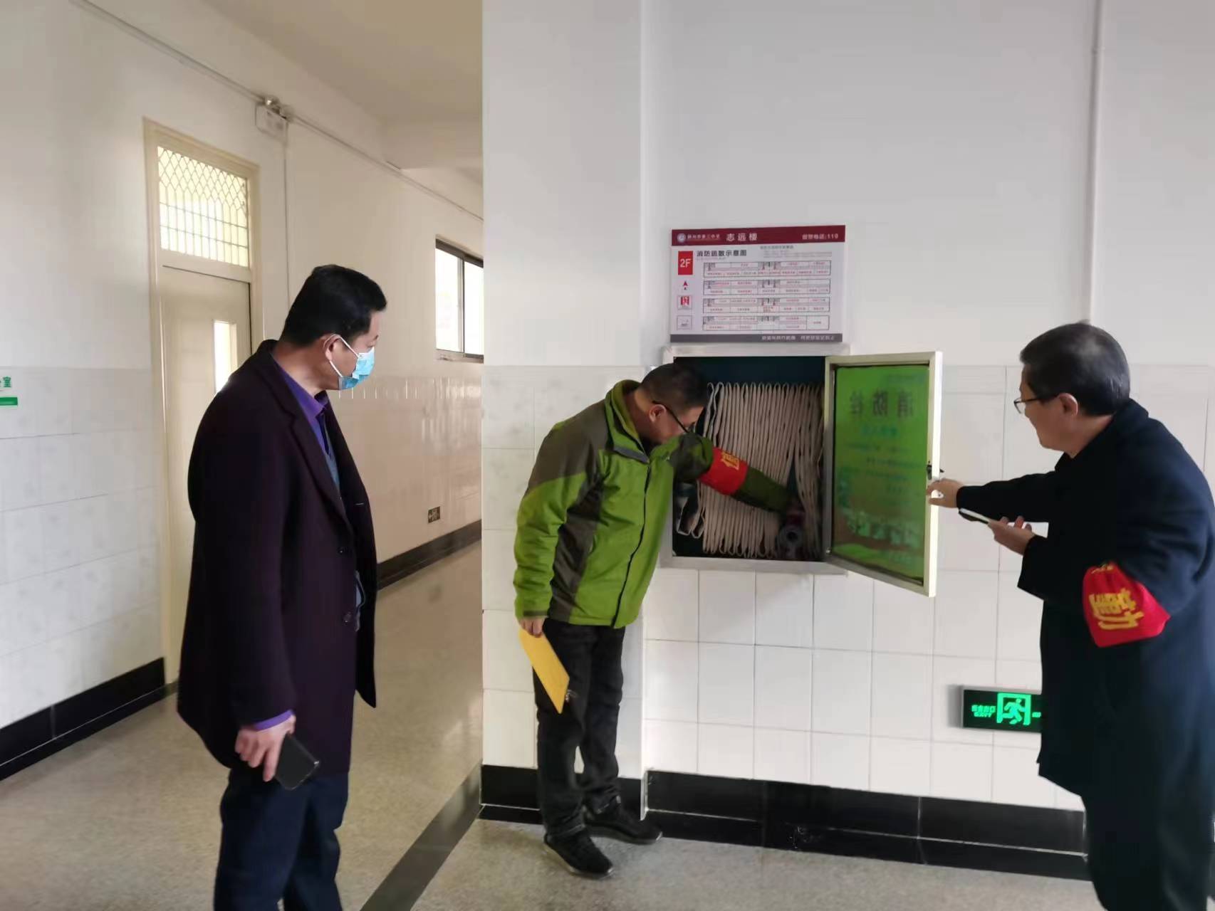 4.进行一次消防安全隐患排查。学校副校长孔祥锋、校长助理杜以斌带领膳食委员会、督察室、总务处、政教处、安全办等科室,在11月14日进行一次消防安全专项大检查,对重要部位进行全面细致地检查,不留死角,发现消防安全隐患,立即整改。