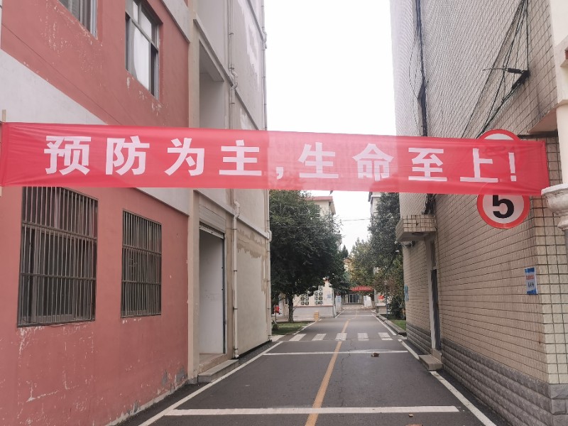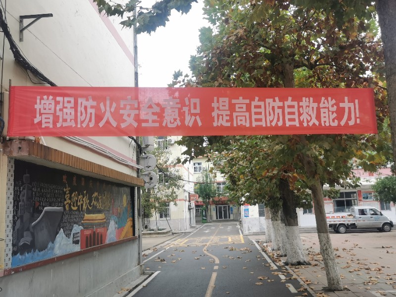 7.悬挂多幅消防安全教育横幅。11月9日前,联合总务处,在师生出入频繁场所、道路悬挂张贴消防安全教育横幅,粘贴了宣传海报,营造消防安全教育氛围。