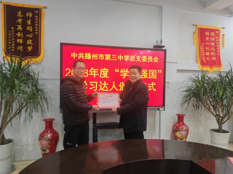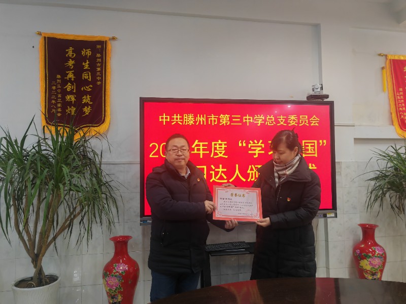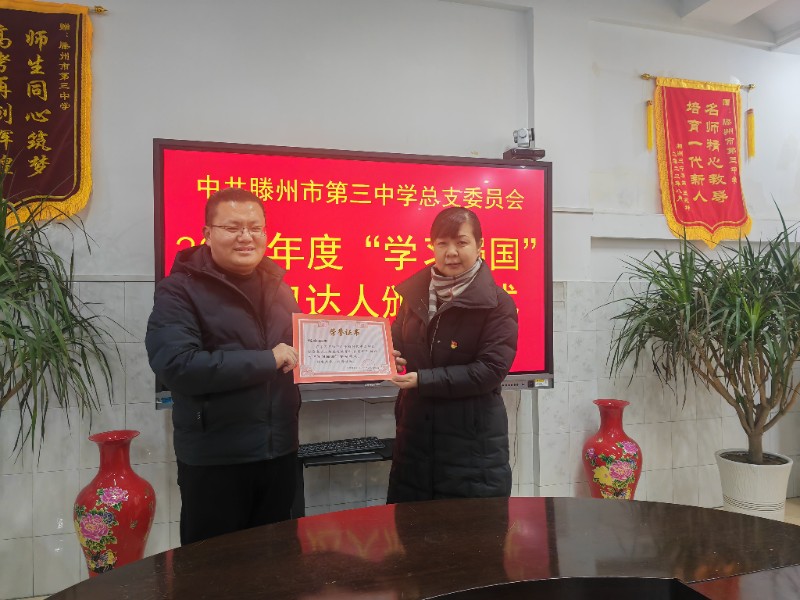 滕州市第三中学党总支表彰“学习强国”学习达人