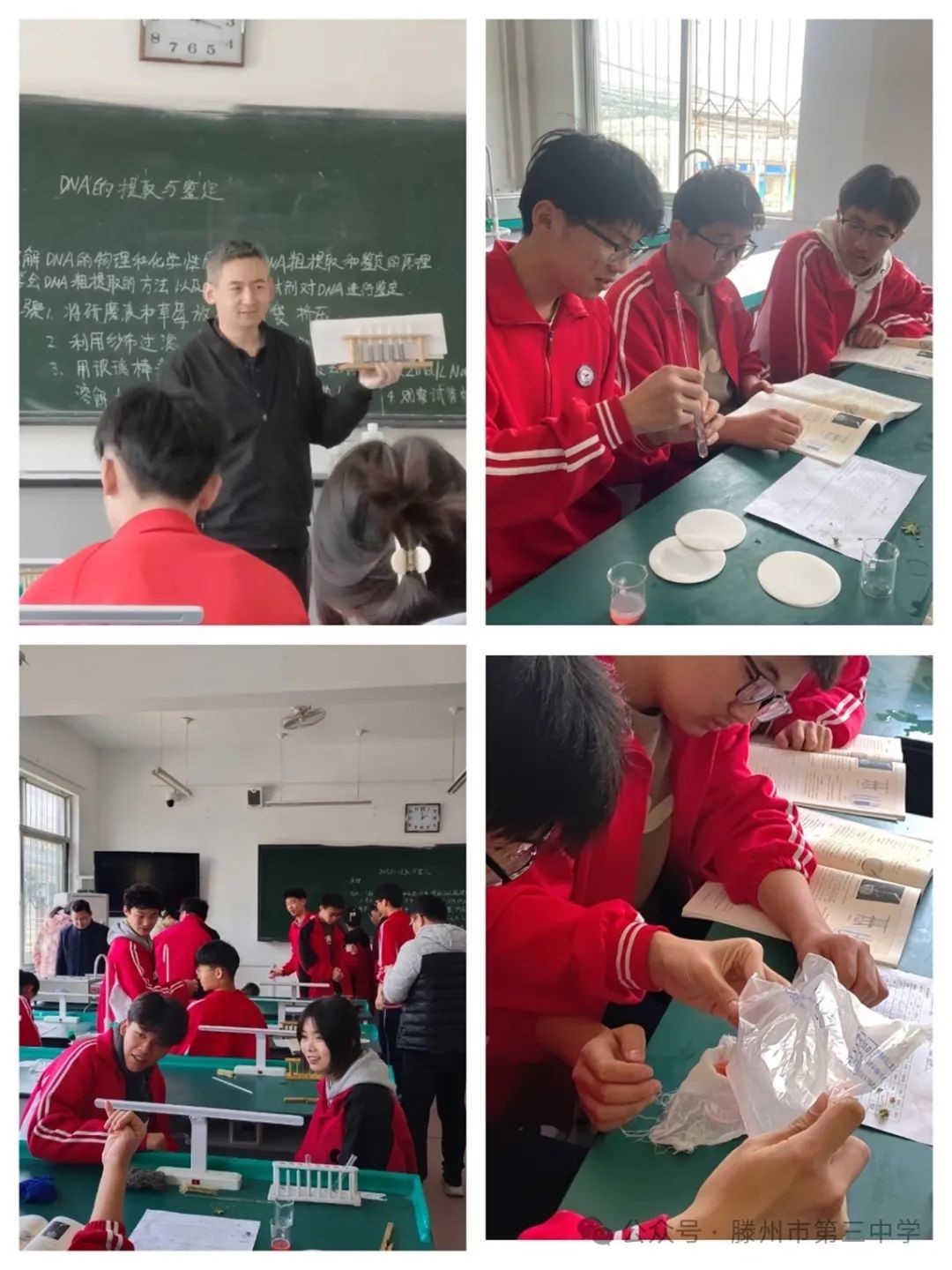 为了提高我校生物教师的实验教学能力,促进学校之间的交流与合作,2024年3月26日下午,滕州三中生物组与滕州五中生物组开展了校际联研活动,在五中实验楼观摩了滕州教学名师王军老师的一节实验教学课。王军老师执教了《DNA粗提取》的实验课,老师们通过现场听课和观看学生操作,深入了解了DNA粗提取的各个步骤,同时也学习到实验教学中的有效教学方法。